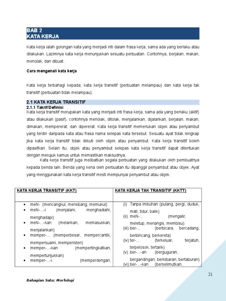 Sektor pengurusan akademik, jabatan pelajaran perak. Kemudian, nyatakan sama ada kata kerja itu kata kerja transitif (kkt) atau kata .
